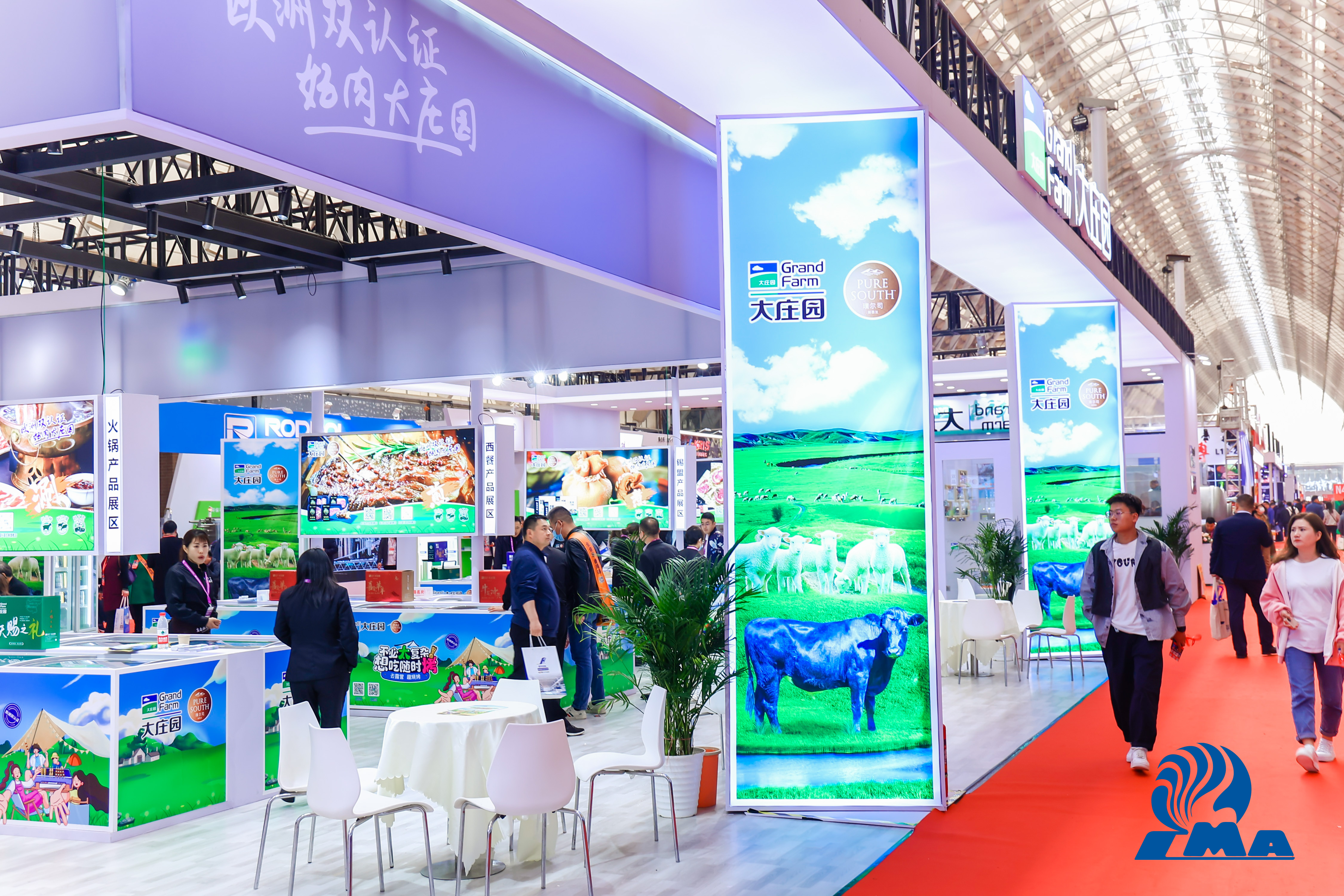 本次展會,大莊園集團精心打造通透、清新而又極具品牌特色的360平方米主題展館,展出涵蓋火鍋、燒烤、西餐、中餐及雙品牌的5個主題展區的200+牛羊單品,吸引了眾多國內外嘉賓參觀、洽談。