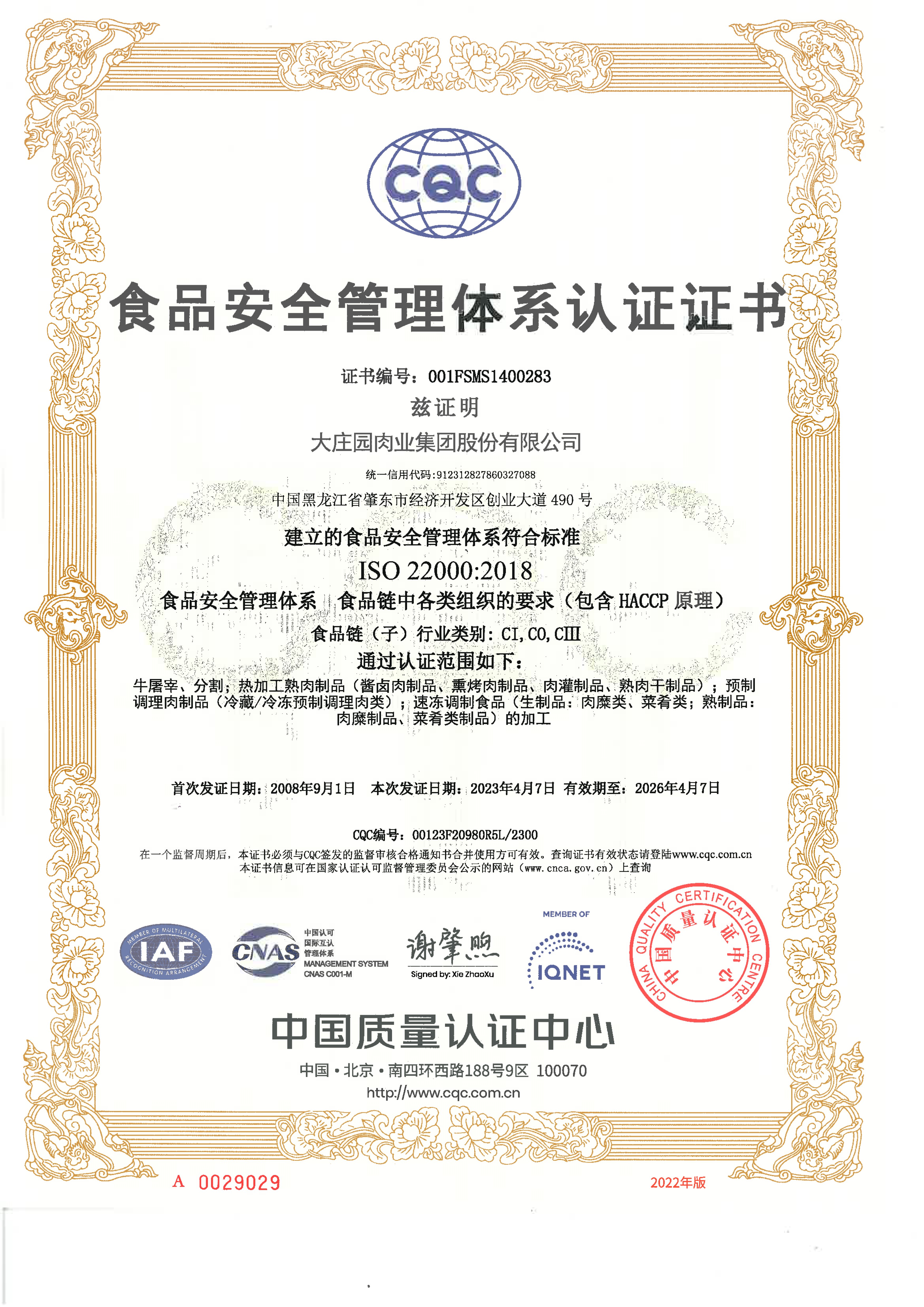2021年1月,通過歐洲國際雙體系質(zhì)量認(rèn)證(BRCGS、IFS)。